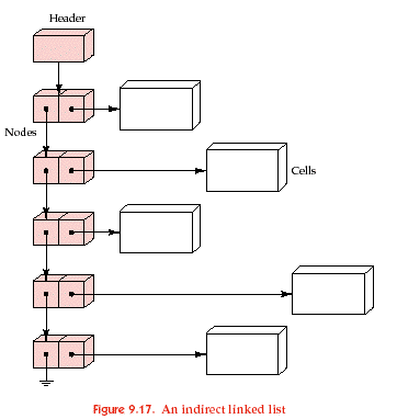 Representations: The cells in the grid for the life game are instances of the Cell class (see the file, cell.h, which has the specification and implementation of this class). The data members of this class are two integers: row and col. Because these cells are created dynamically (as each cell is born) and deleted dynamically (when cells die) it is easier to work with pointers to the Cell objects. Thus, both our linked list and hash table contain pointers to cells in each location as opposed to the cells themselves. In addition, the Hash_table class uses chaining to resolve collisions. Thus each occupied position in the hash table will contain a pointer to a linked list of pointers to cell objects. An example from the text of such an "indirect" linked list is shown below: