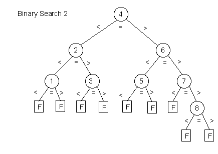 3) Draw the comparison tree for binary search 2 for a list of length 8. What is the height of the tree? What is the External path length of the tree? What is the Internal path length of the tree? What is the average number of comparisons made for successful searches? For unsuccessful searches?