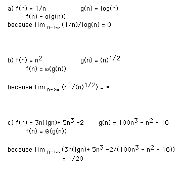 2) For each of the following pairs of functions, use O notation to write how f(n) compares to g(n). I.e. write f(n) is o(g(n)), O(g(n)), Q(g(n)), W(g(n)), or w(g(n)). Explain each of your answers.