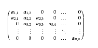 3) A tri-diagonal matrix is a square matrix in which all entries are 0 except possibly those on the main diagonal and on the diagonals immediately above and below it. That is, T is a tri-diagonal matrix means that T(i, j)= 0 unless |i - j| <= 1 as shown below. Devise a space-efficient storage scheme for tri-diagonal matrices, and give the corresponding index function.