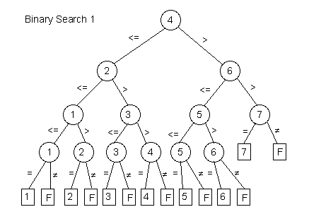 f) Draw the comparison trees for binary_search_1 and binary_search_2 for n = 7.
